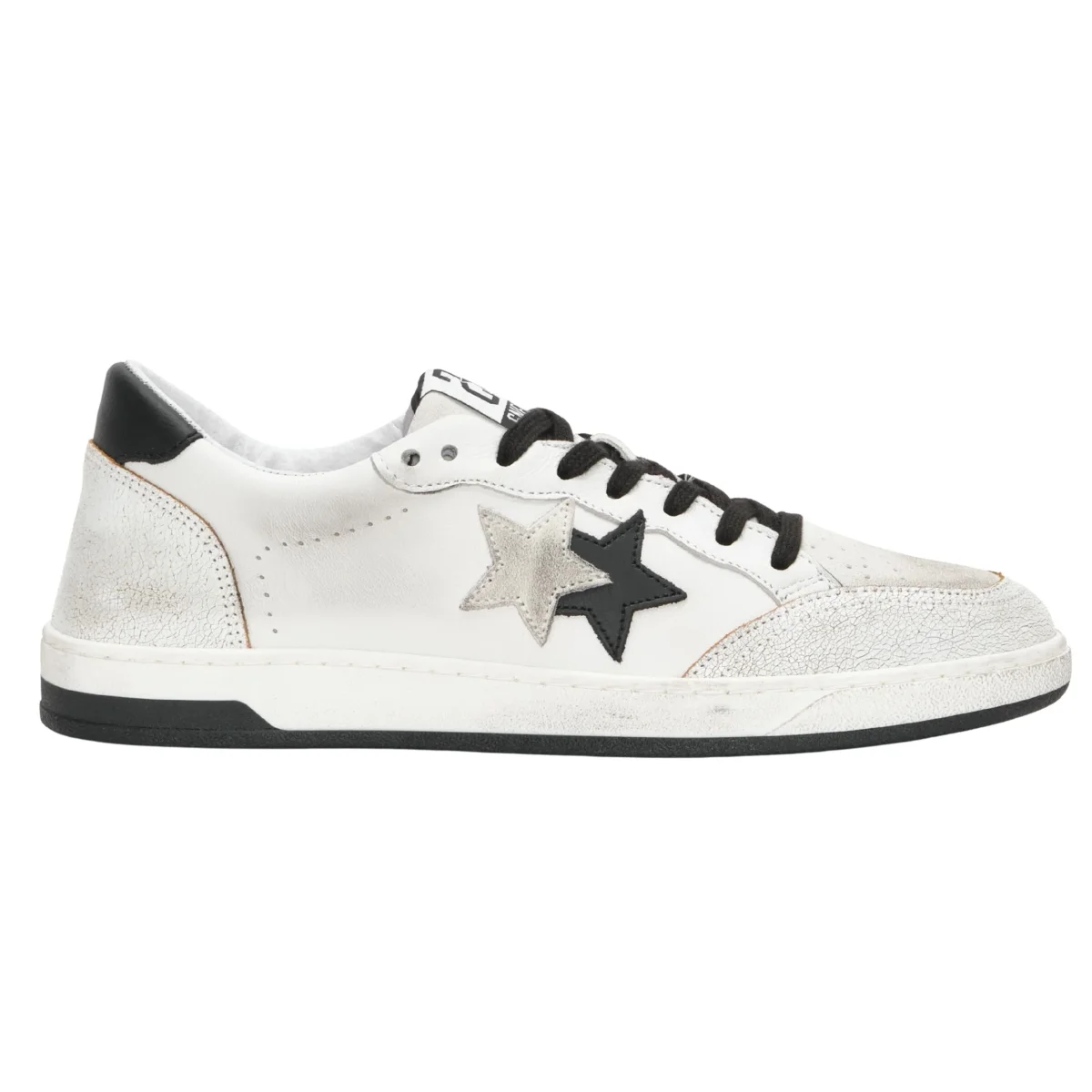 2Star Scarpe Sneakers Made in Italy artigianali Week Star Pelle Bianco Nero Uomo