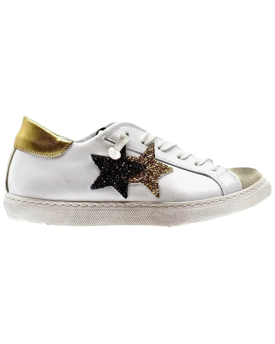2Star Sneakers One Star Pelle Bianca Dettagli Glitter Rosa