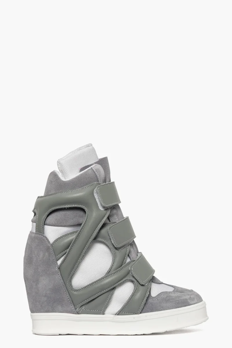 Sneakers Upp String con strappo e rialzo interno pelle e camoscio grigio