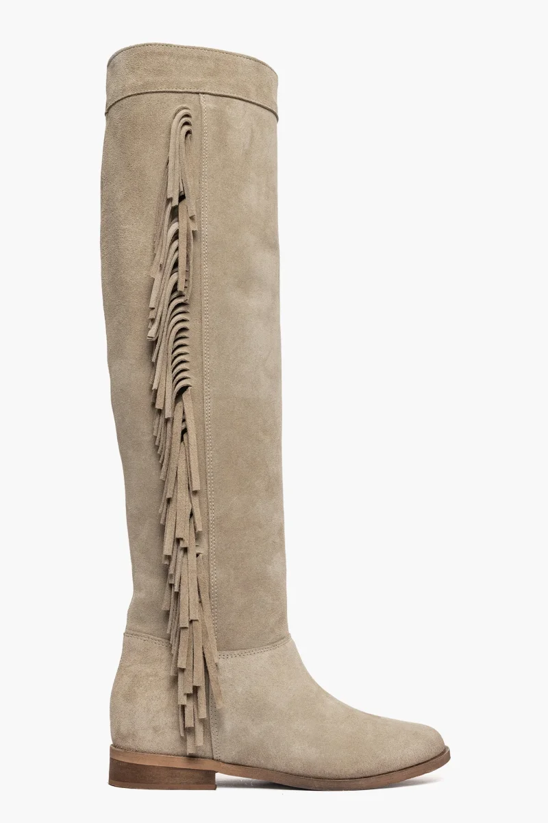 Stivale Roma 910 con rialzo e frange camoscio taupè