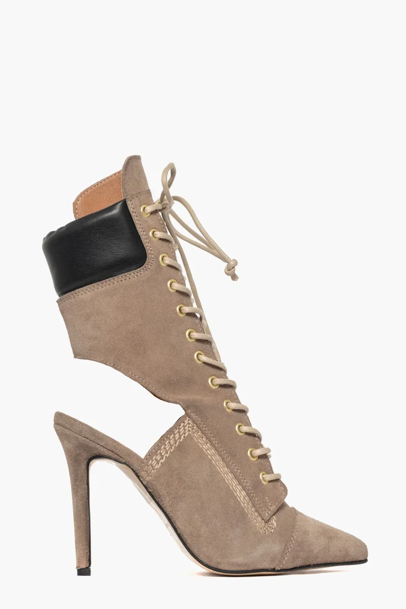 Stivaletti con lacci camoscio taupè Sidney 100