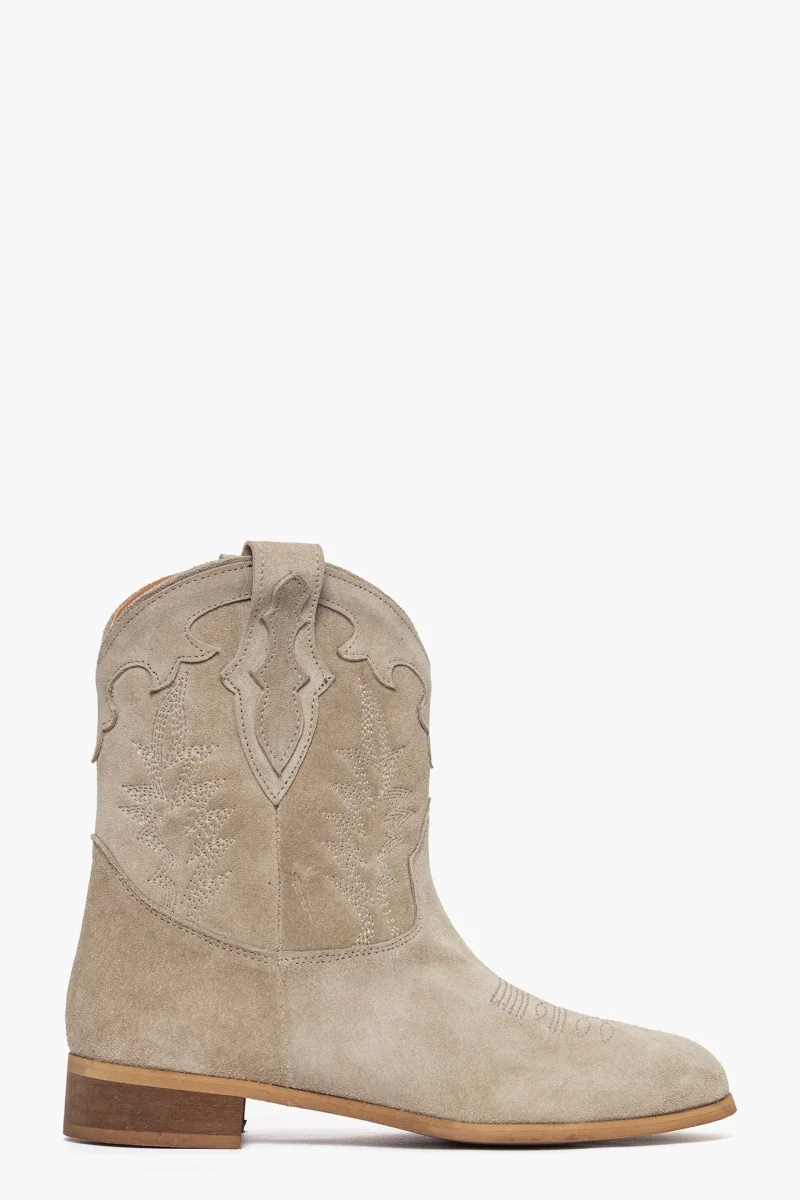 Stivaletti camoscio taupè alla caviglia con ricamo 292