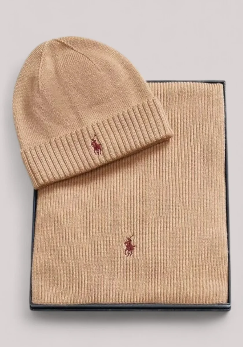 ACCESSORI UNISEX KIT BERRETTO E SCIARPA MERINOS CAMMELLO