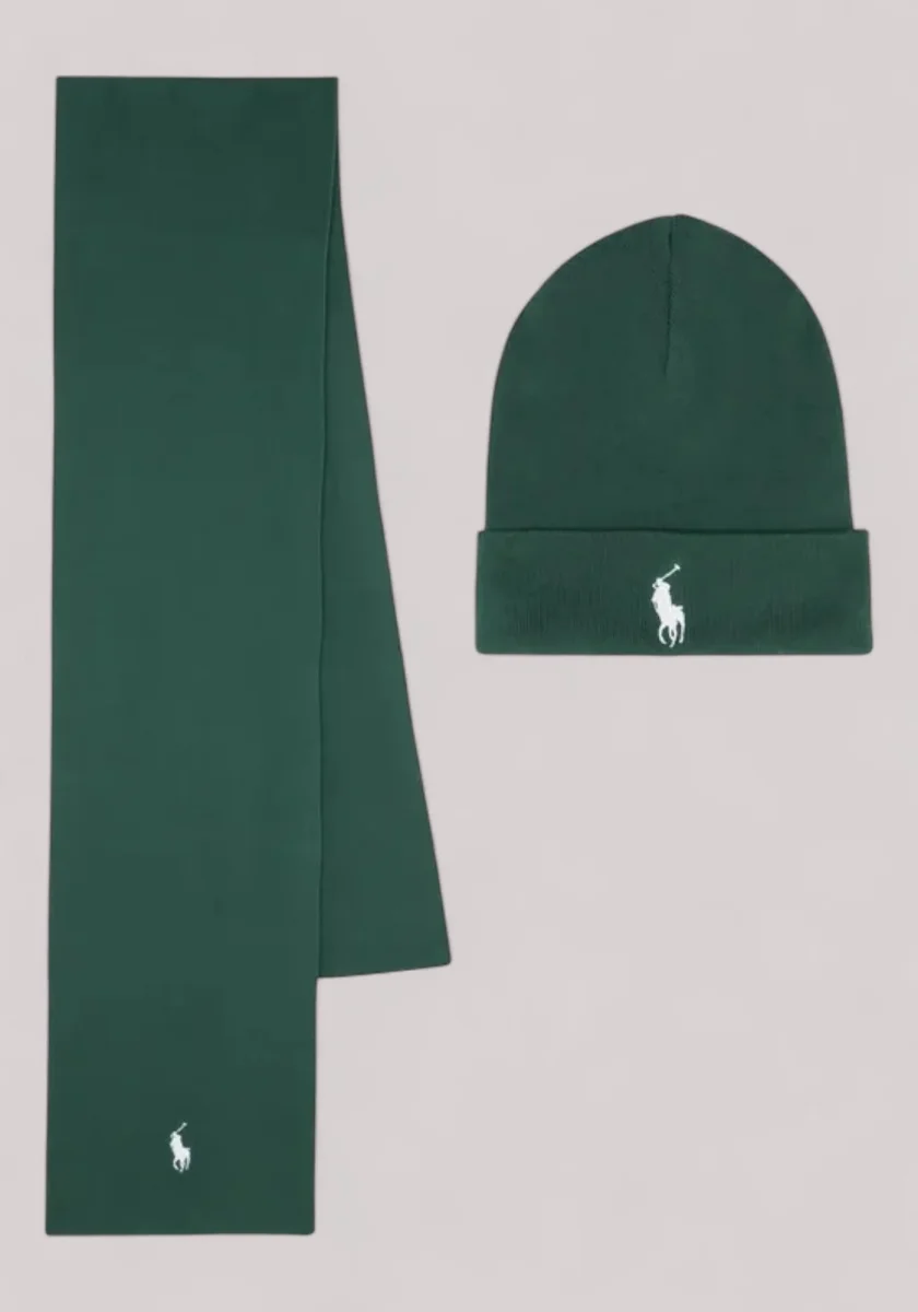 ACCESSORI UNISEX KIT BERRETTO E SCIARPA COTONE VERDE