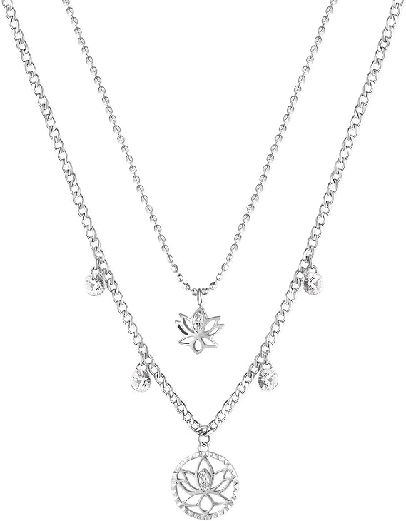 Brosway Collana Donna CHAKRA in acciaio doppio filo fiori di loto e cristalli crystal – BHKN064