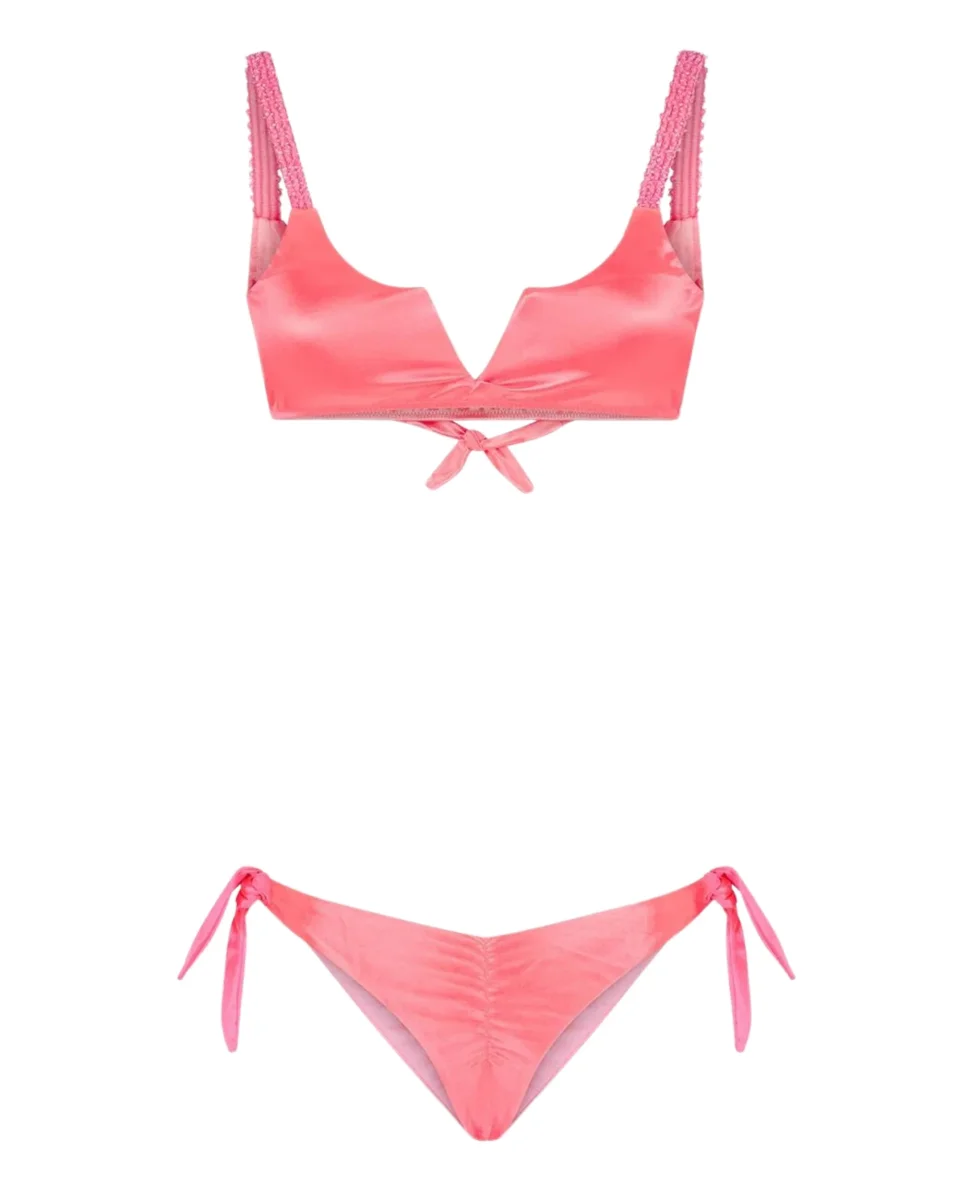 Mefui Bikini Top E Slip Americano Regolabile Con Nodi Glow Up Rosa Donna