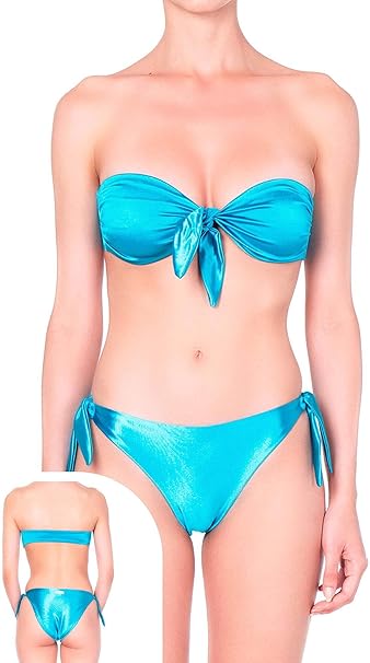 Mefui Bikini Set con Top a Fascia Azzurro Donna