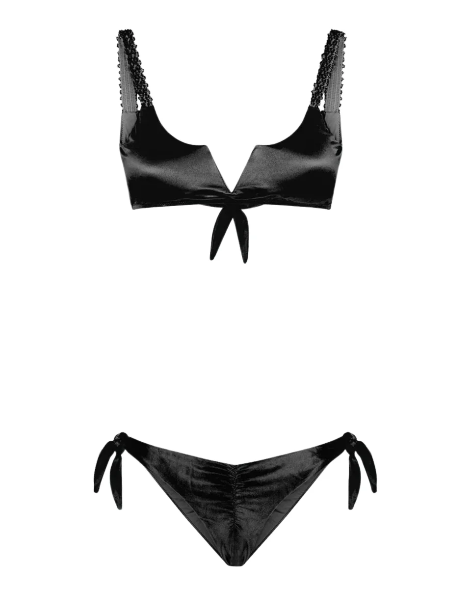 Mefui Bikini Top E Slip Americano Regolabile Con Nodi Glow Up Nero Donna
