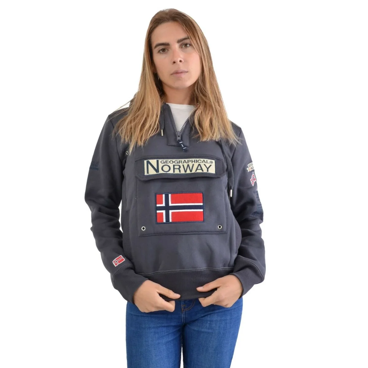 Geographical Norway Hoodie Con Cappuccio Grigio Donna