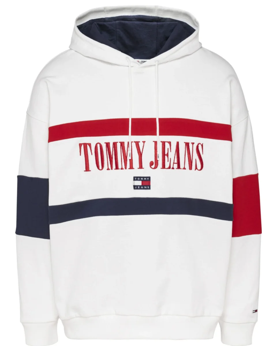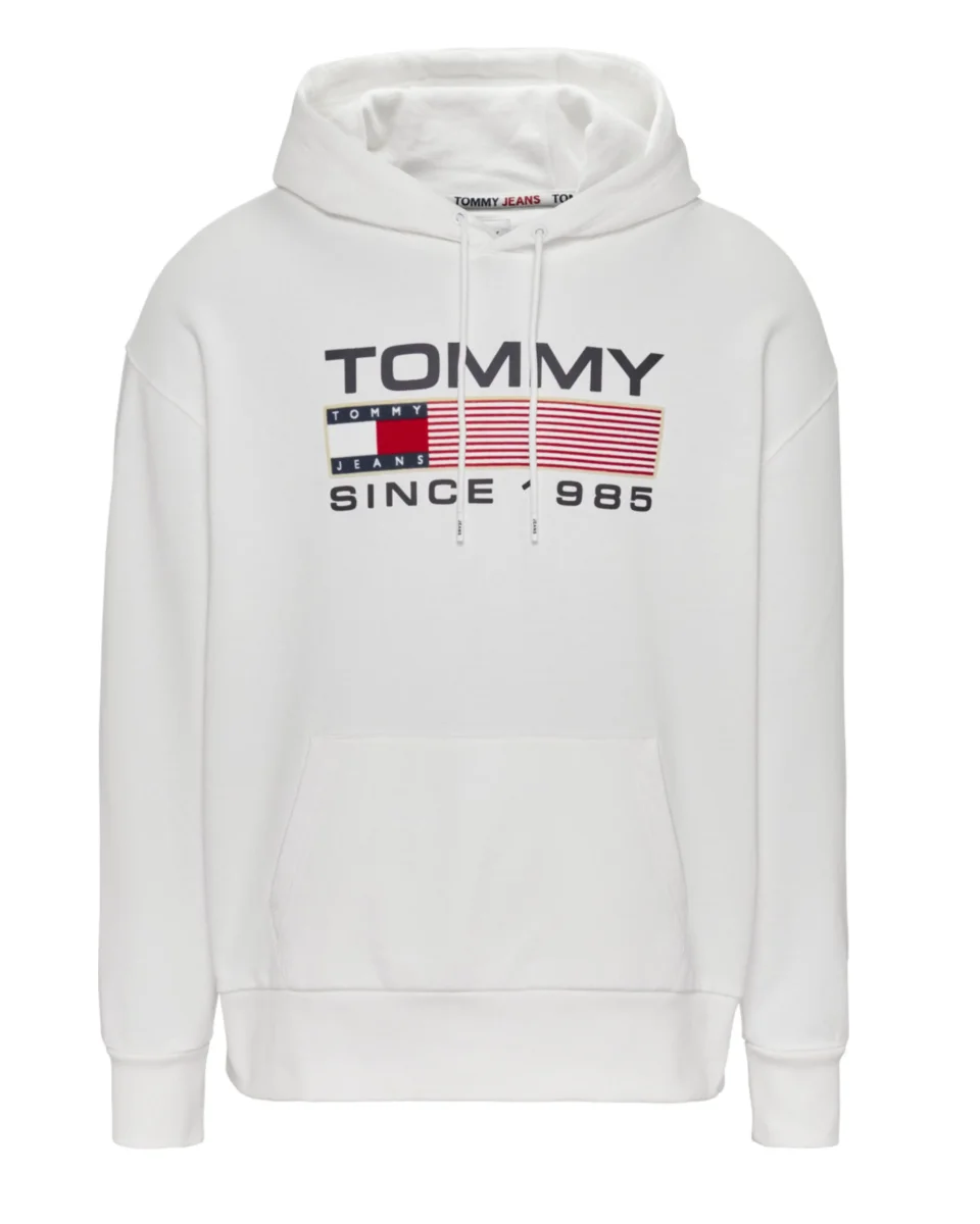 Tommy Jeans Felpa con Cappuccio Logo Bianco in Cotone