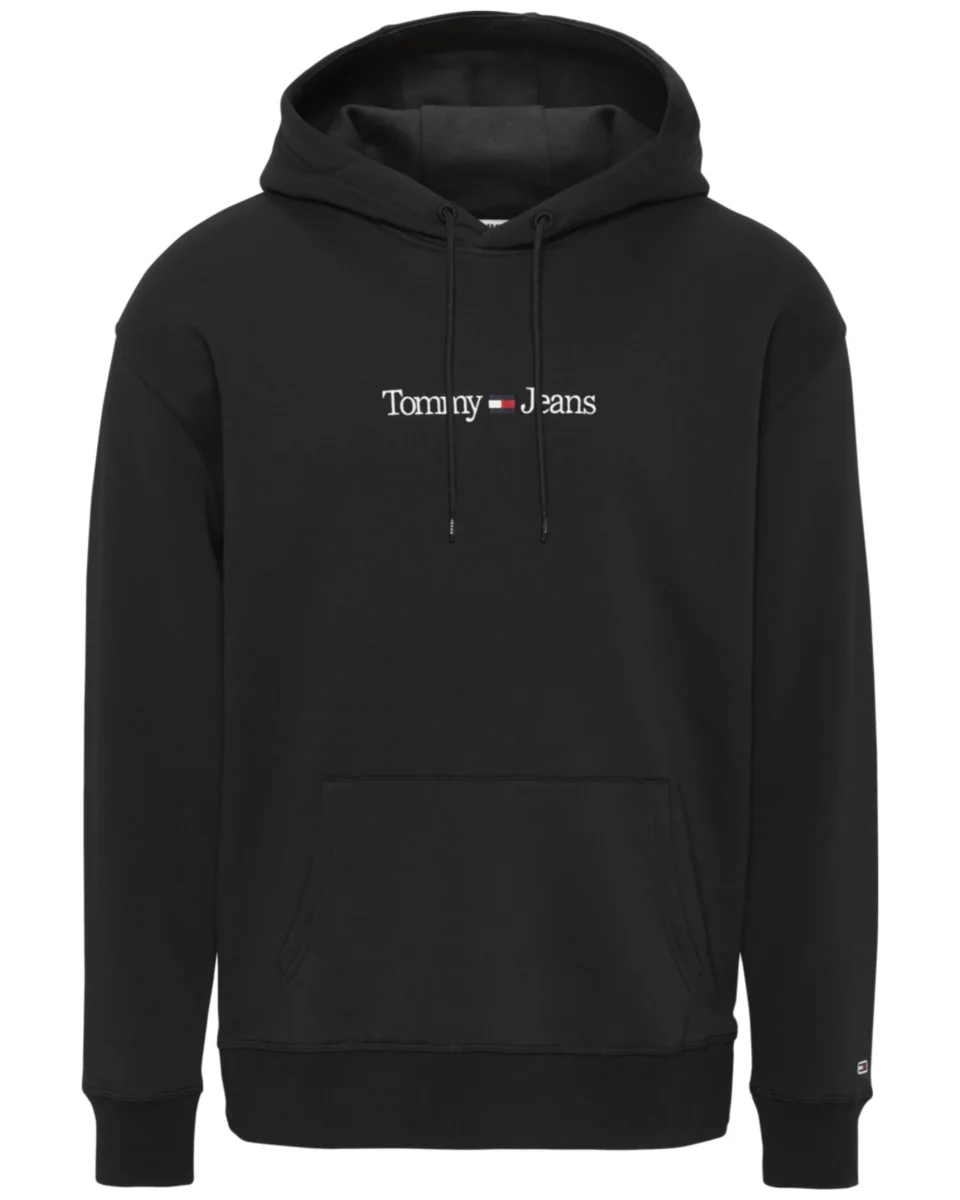 Tommy Jeans Felpa Regular Linear con Cappuccio Misto Cotone Nero