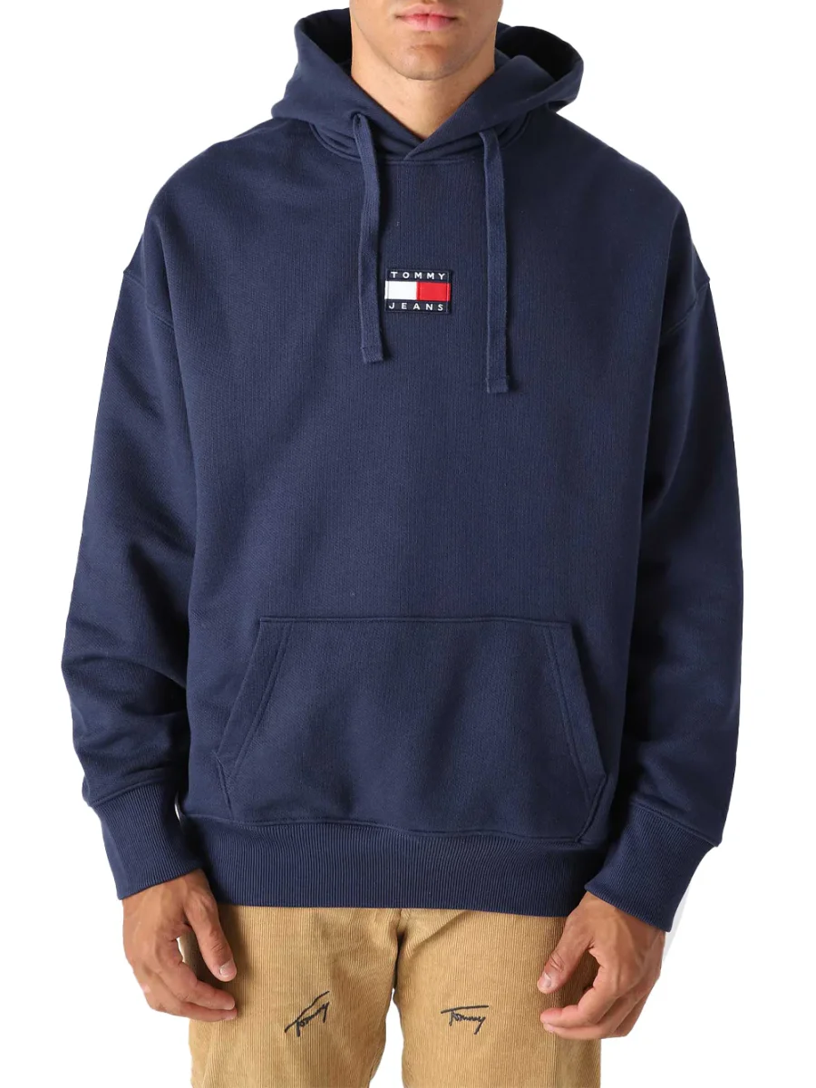 Tommy Jeans Felpa con Cappuccio Distintivo Blu in Cotone
