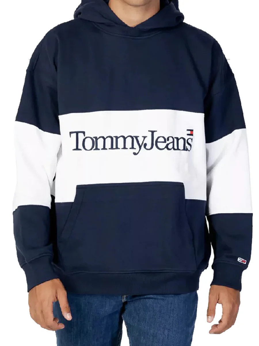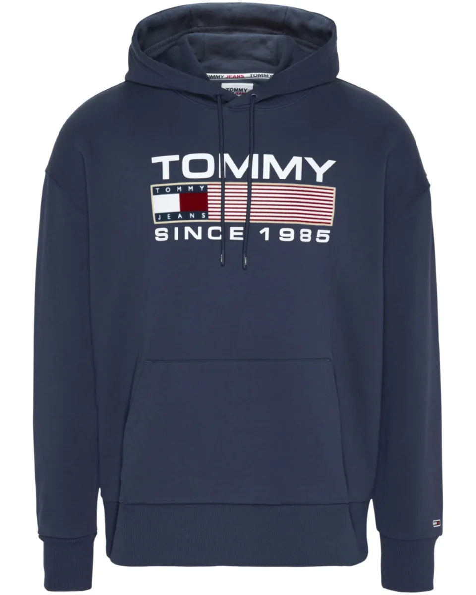 Tommy Jeans Felpa con Cappuccio Logo Blu Cotone