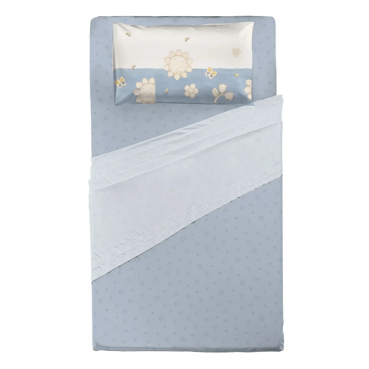 THUN® Completo Letto Lenzuola Piazza e Mezza in Cotone Elegance Azzurro B201047