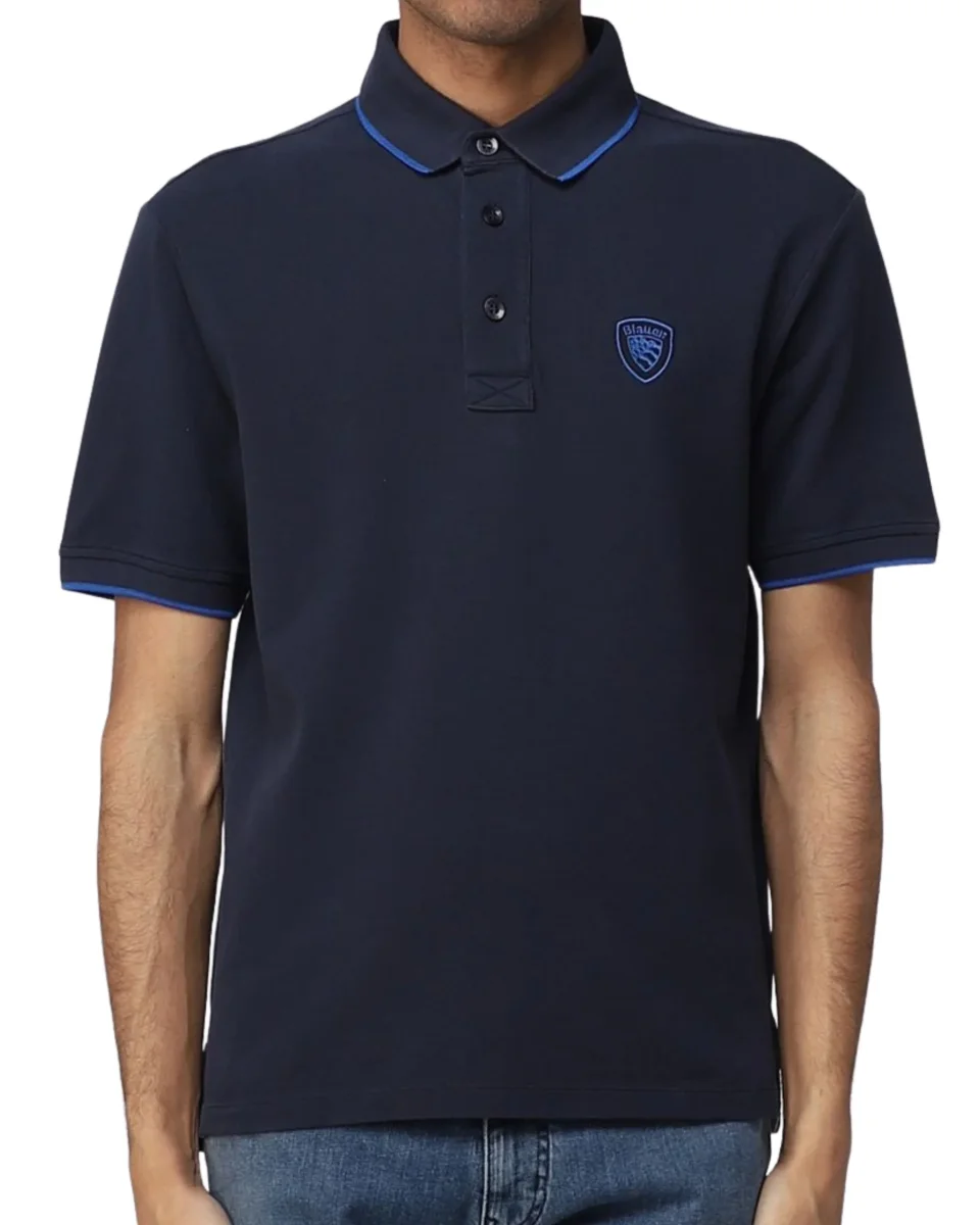 Blauer Polo maglietta Logo Scudo Sul Petto Uomo blu navy Alban