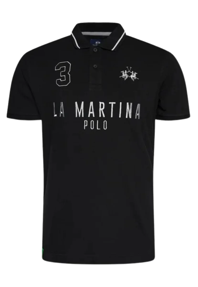 La Martina Polo Ricamo e Numero Logo Cotone Nero