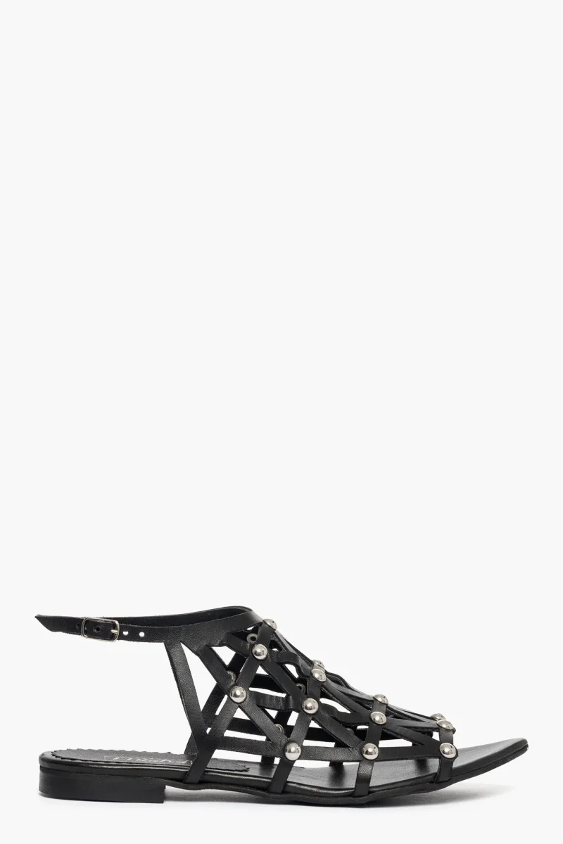 Sandalo pelle nero con borchie Gaia