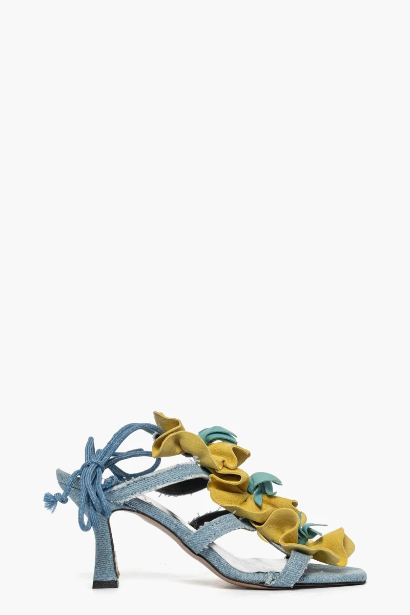 Sandalo Love Fiore denim e camoscio giallo e celeste