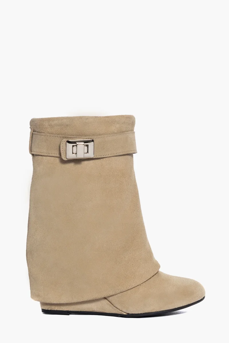 Stivaletti Annachiara 5 camoscio beige con risvolto