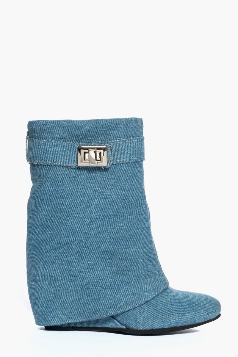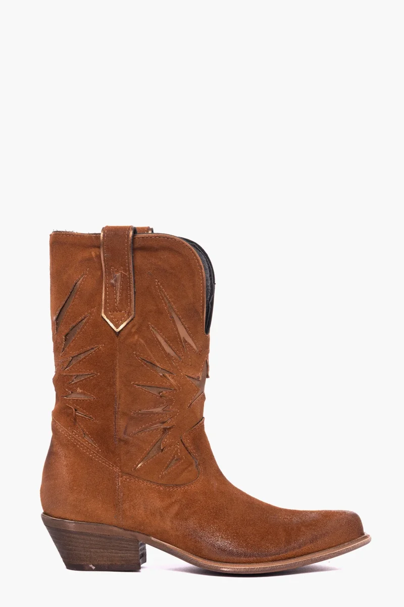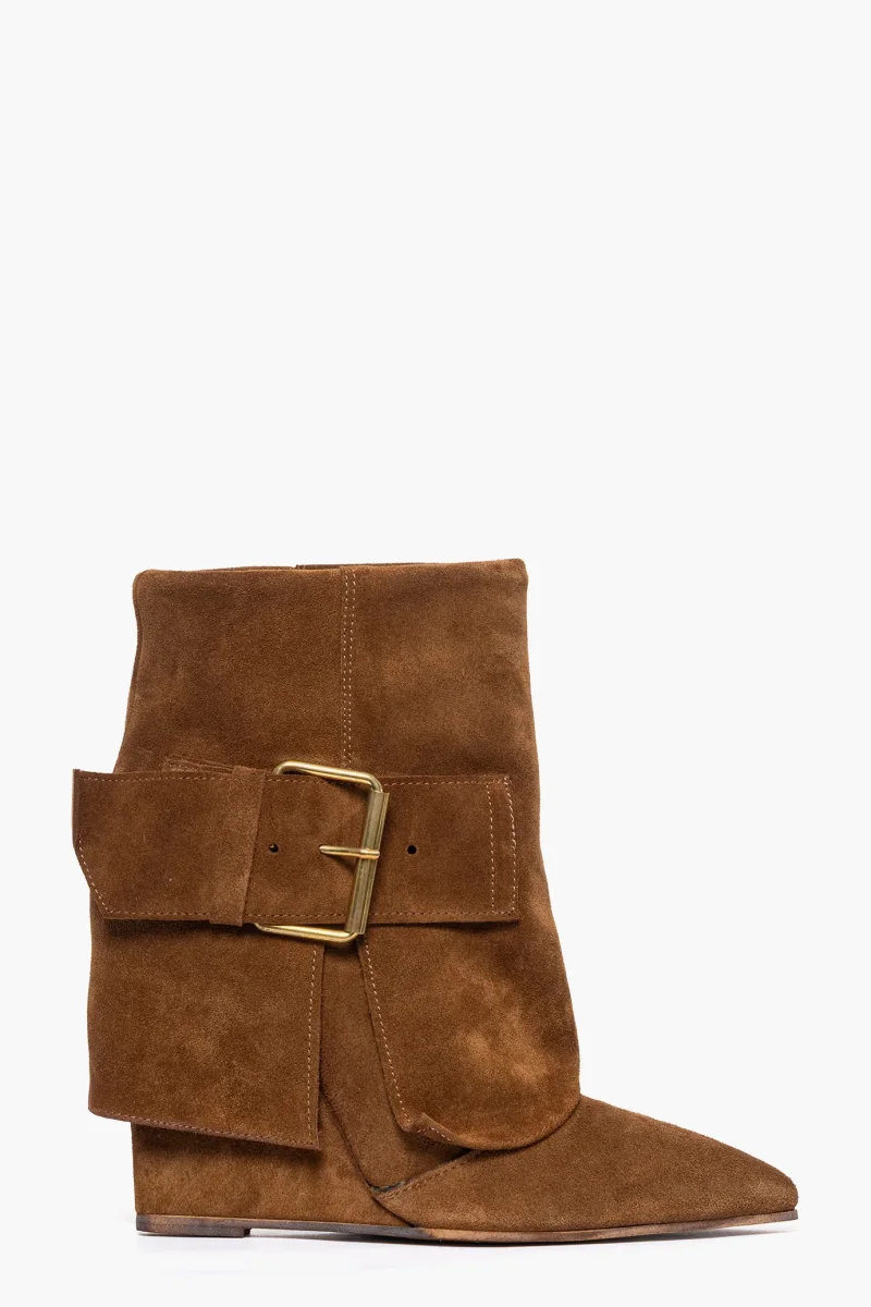 Stivaletti alla caviglia con risvolto camoscio cuoio con fibbia oro 1720