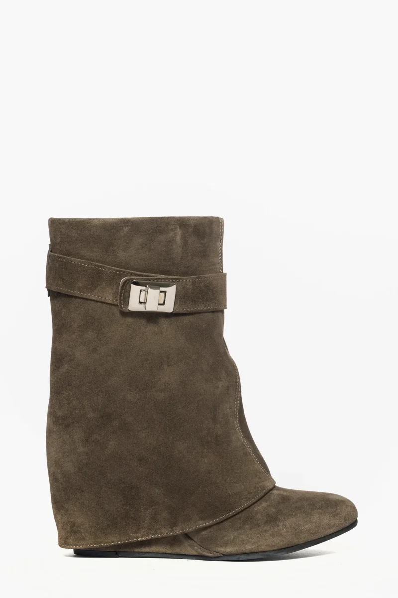 Stivaletti Annachiara 5 camoscio verde militare con risvolto