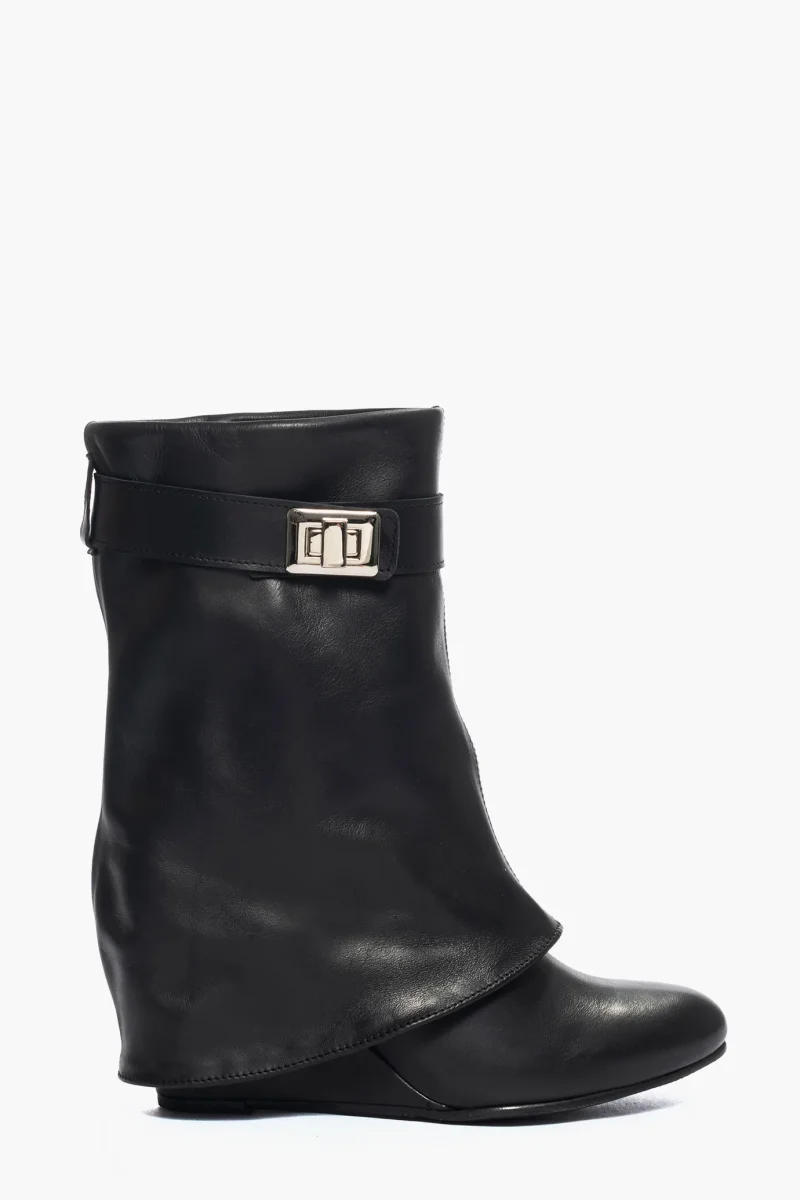 Stivaletti Annachiara 5 pelle nero con risvolto