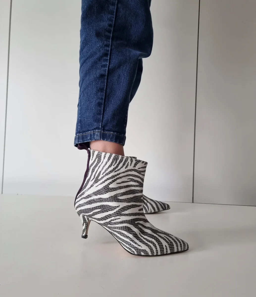 Stivaletti alla caviglia semilucido zebrato bianco nero 2504