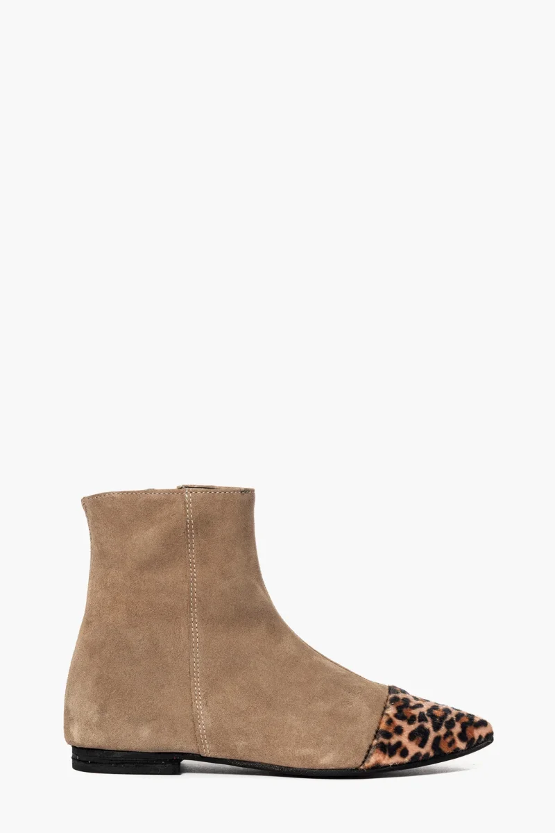 Stivaletti Evelyn 9 camoscio taupe e punta animalier