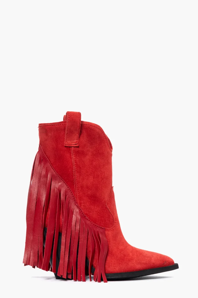 Stivaletti camoscio rosso e pelle con frange Gabriella 8