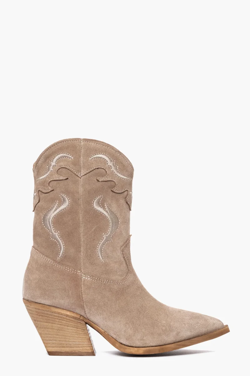 Stivaletti camoscio taupè con ricami 298