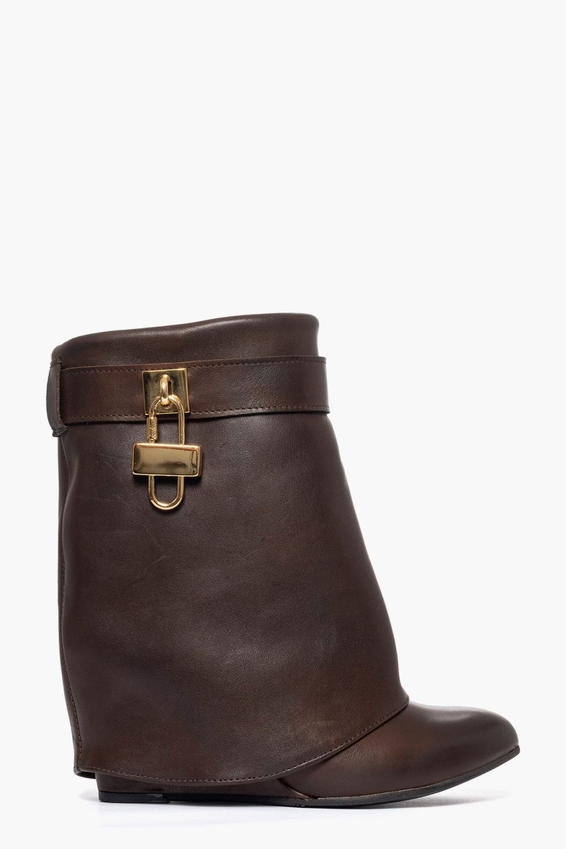 Stivaletti con risvolto pelle testa di moro e accessorio oro Cinzia 11