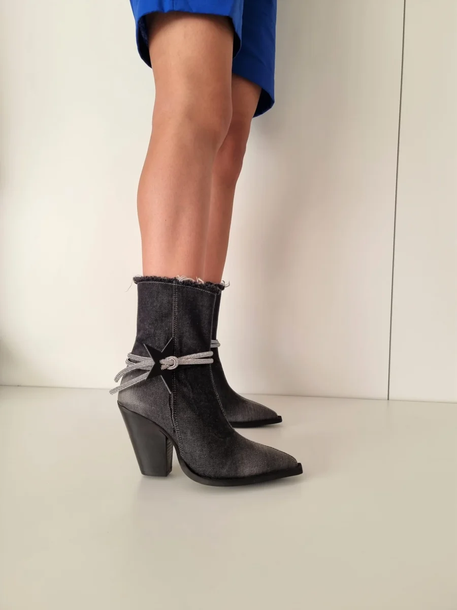 Stivaletti Gabriella Star jeans slavato nero con cavigliera strass