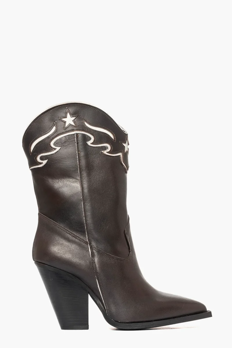 Stivaletti Gabriella 3 pelle testa di moro e riporto bianco