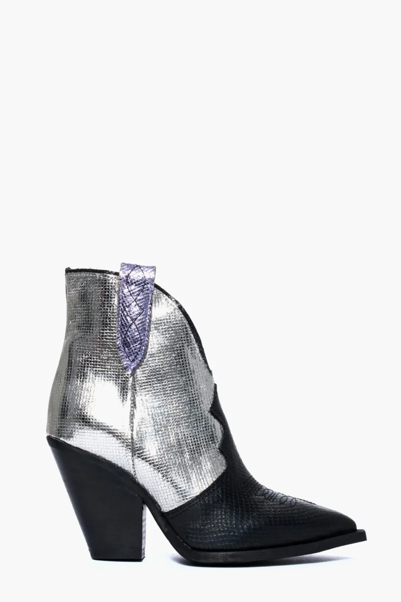 Stivaletti Gabriella Trend crac laminato argento, viola e pelle nero