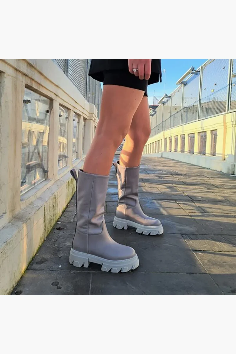 Stivali Wake 37 pelle bottolato grigio