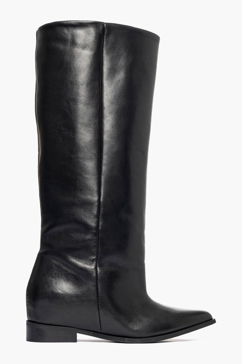 Stivale gambale ampio pelle nero rialzo interno Londra L