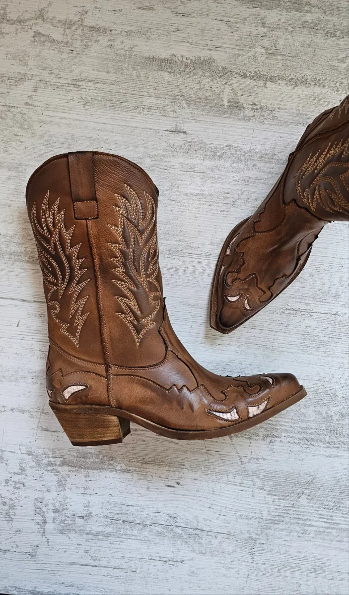 Stivale Irene Mers nabuk ingrassato cuoio spazzolato con ricamo