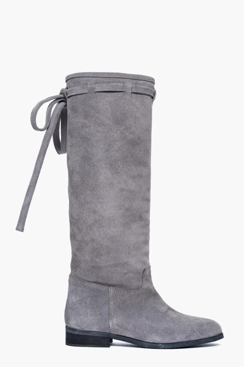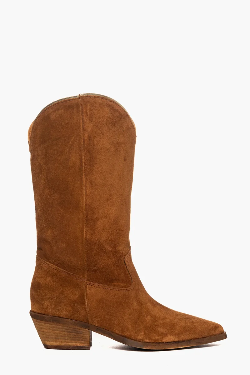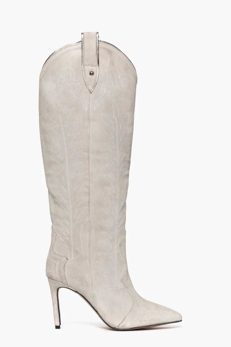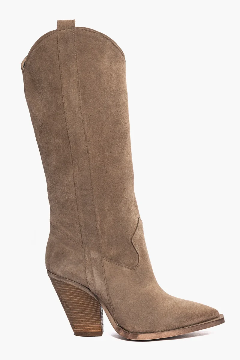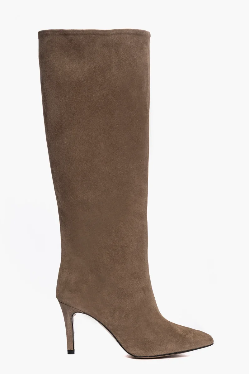 Stivali camoscio taupè taglio ampio Lorena Midi