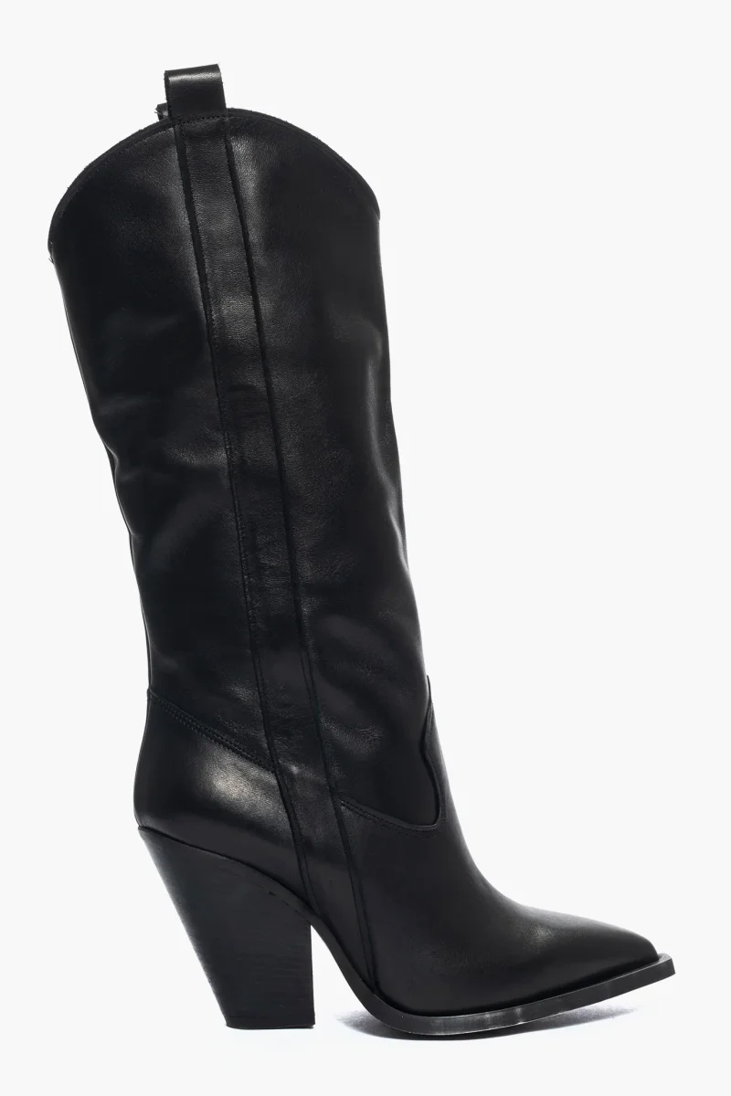 Stivali Cecilia 2 pelle nero con ricamo nero