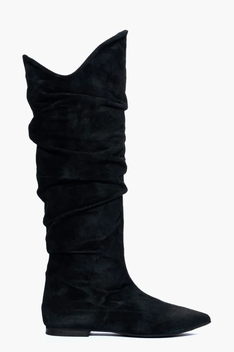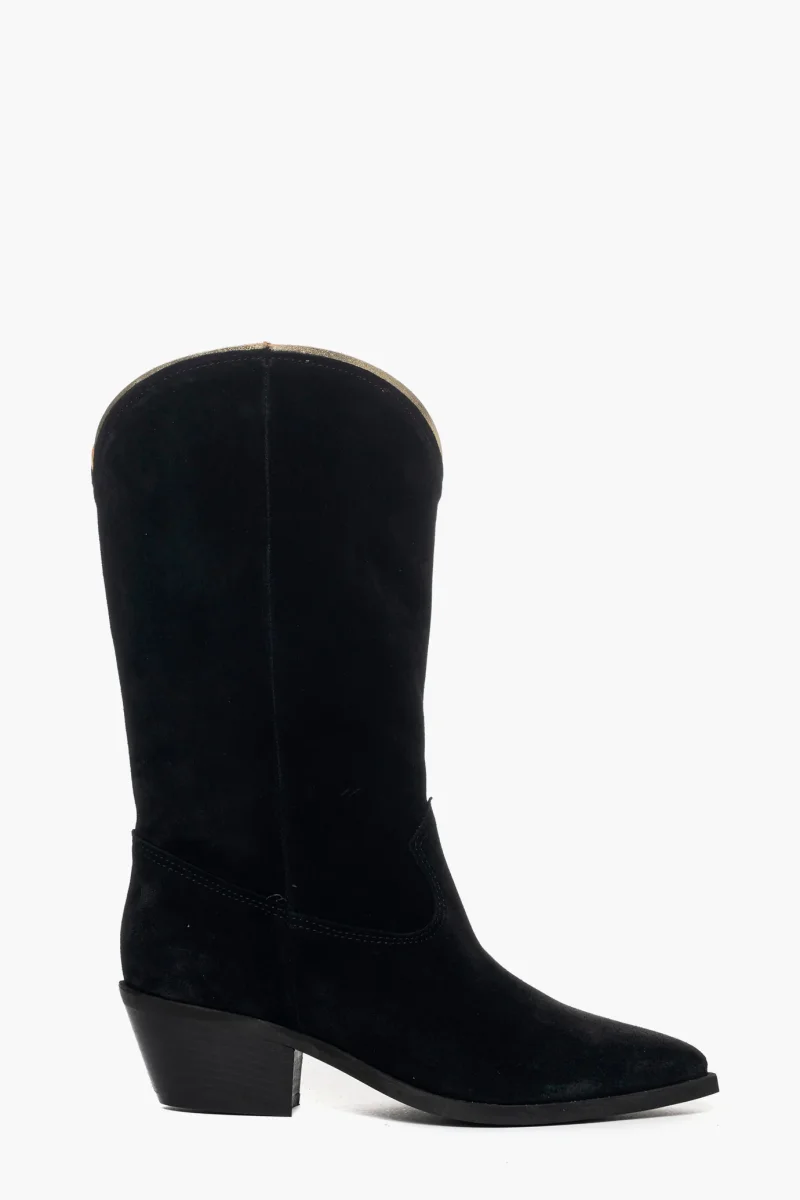Stivali camoscio nero con rialzo e ricamo Roma 288