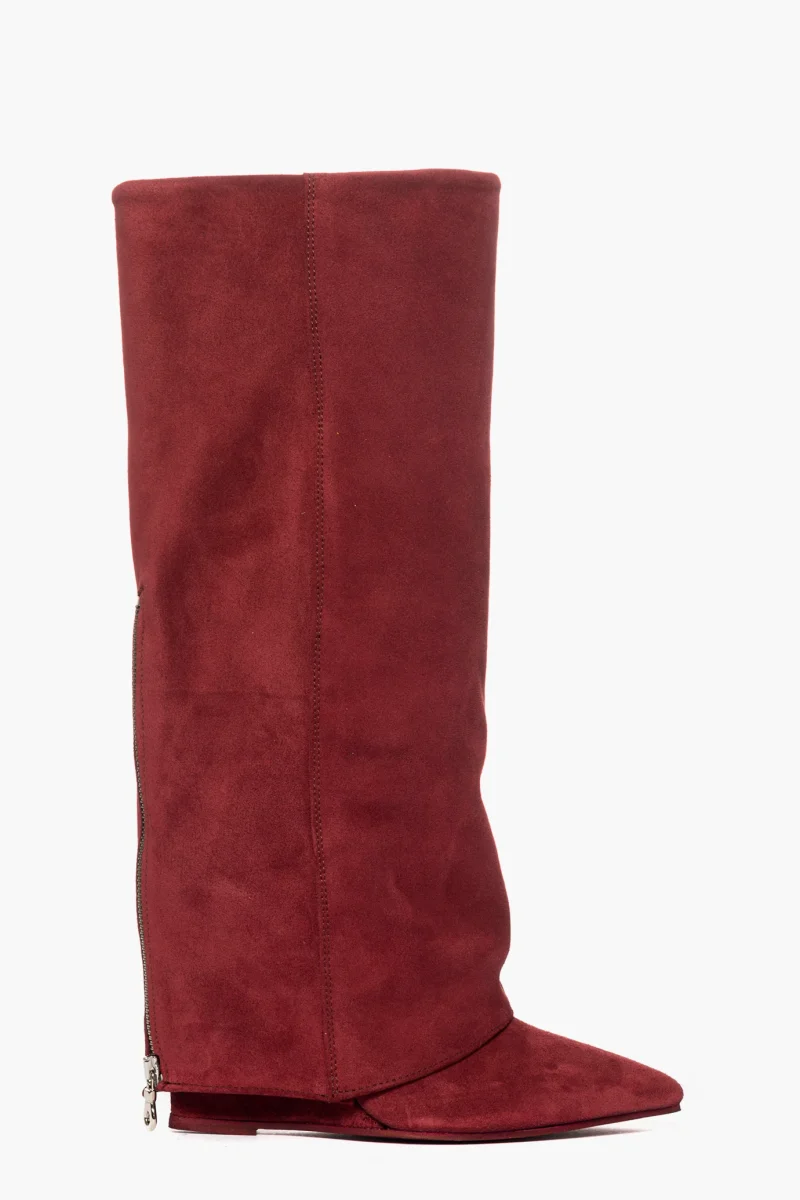 Stivali camoscio bordeaux e risvolto con zip 1719