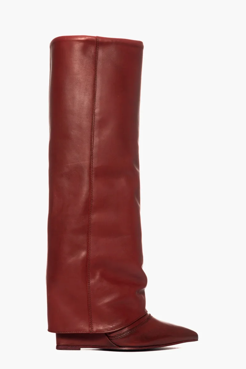 Stivali con zeppa e risvolto in pelle bordeaux 1721
