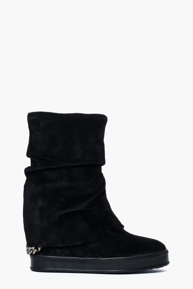 Stivali con zeppa e risvolto con zip camoscio nero 1719