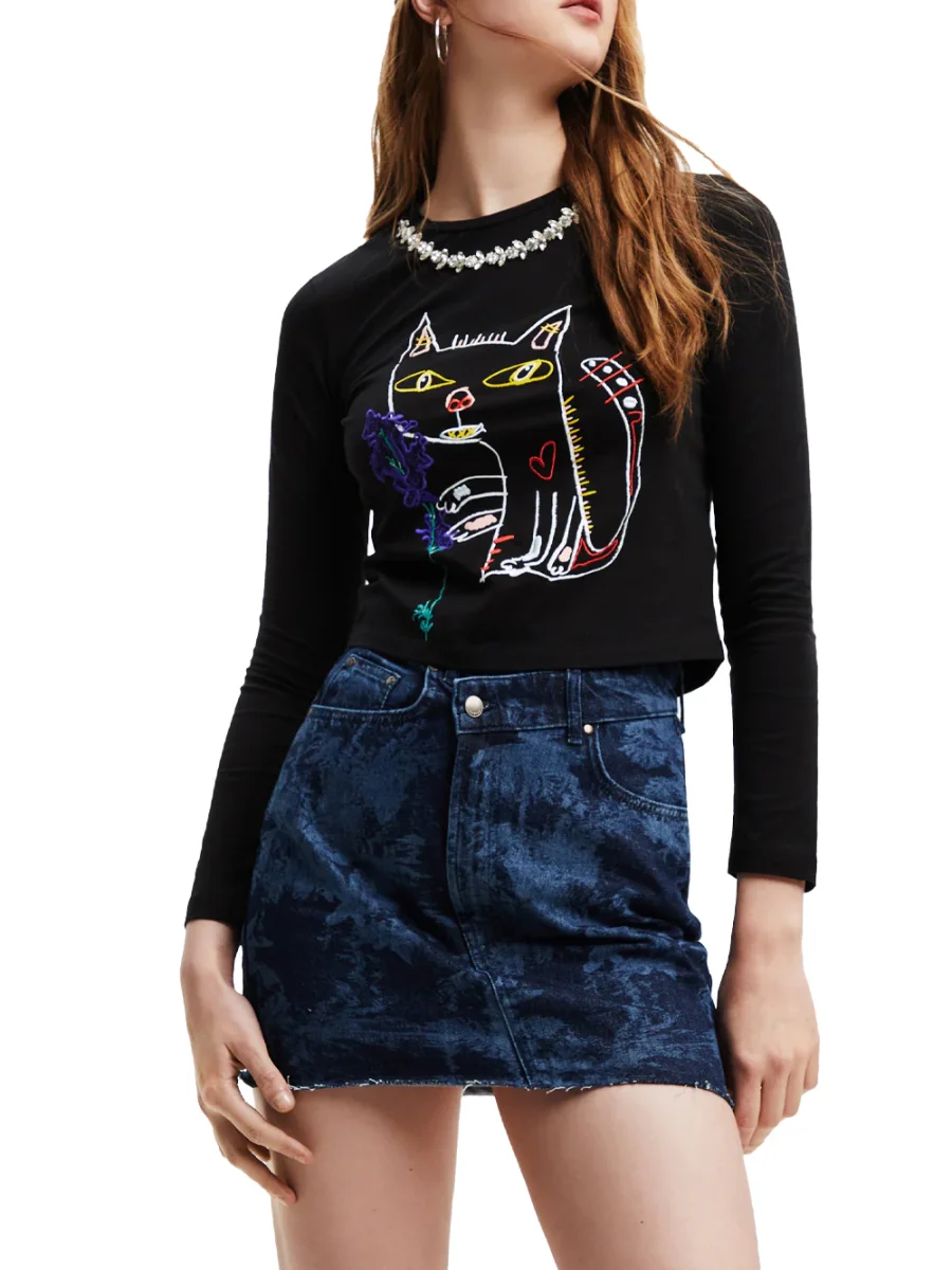 Desigual Maglia Manica Corta Topolino Disney Nero Donna
