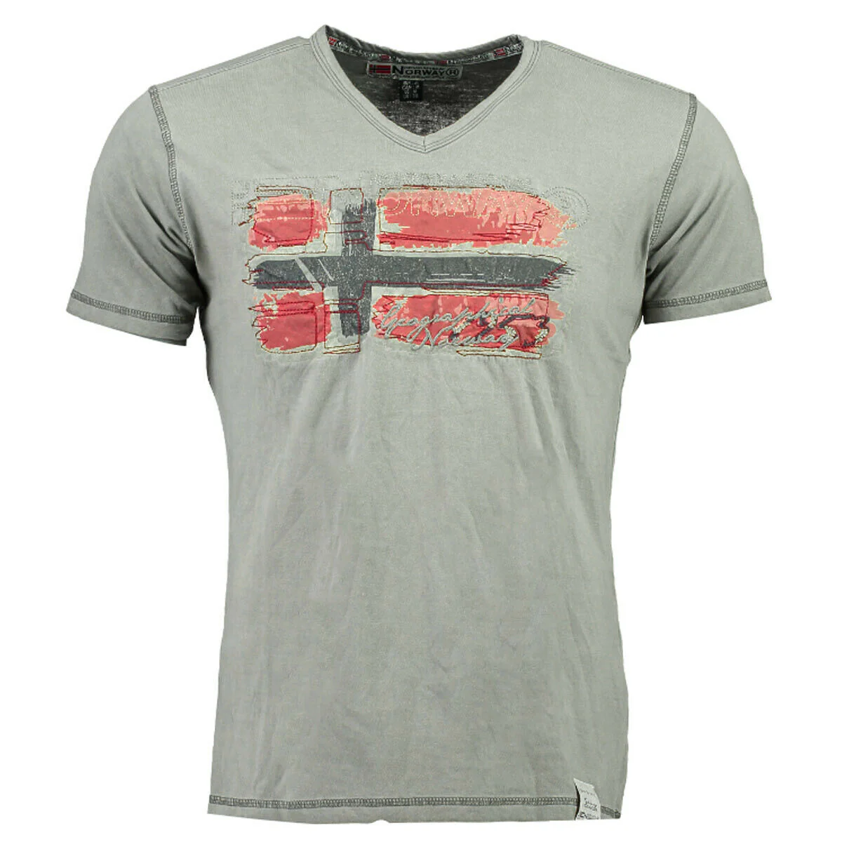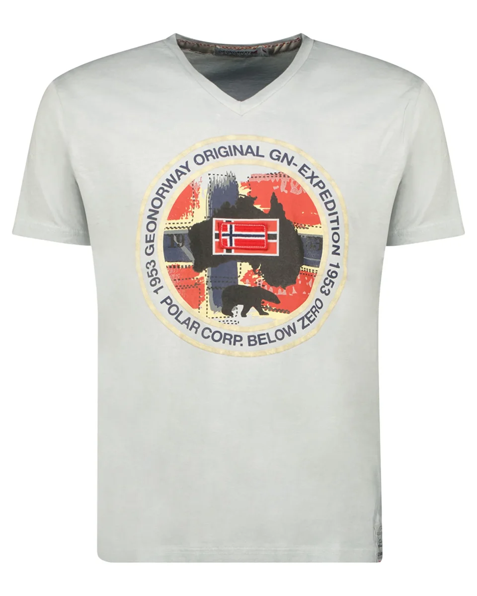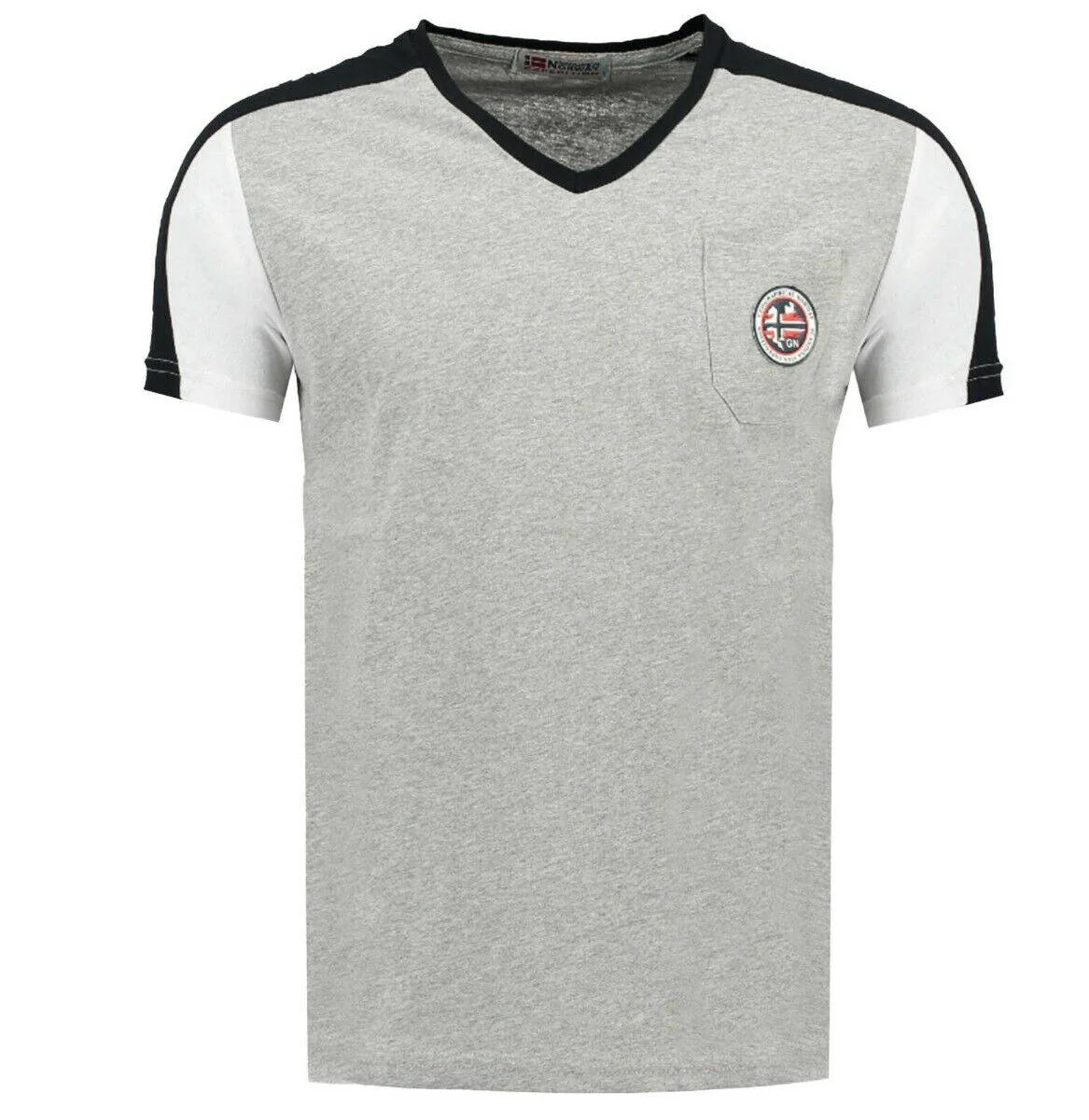 Geographical Norway Manica Corta Scollo V Grigio Uomo