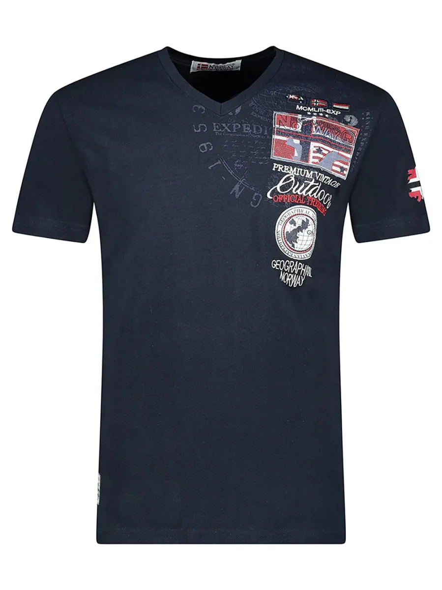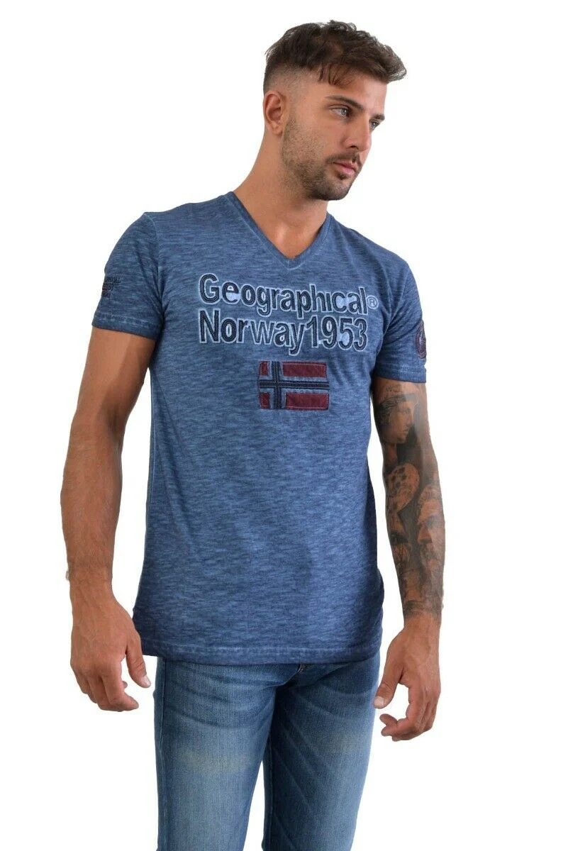 Geographical Norway Manica Corta Scollo V Blu Uomo