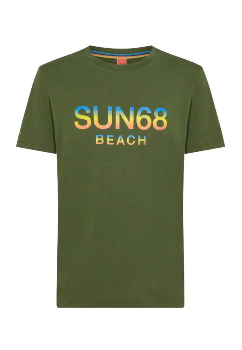 Sun68 Maglietta Manica Corta Beach Big Logo Cotone Verde T34141