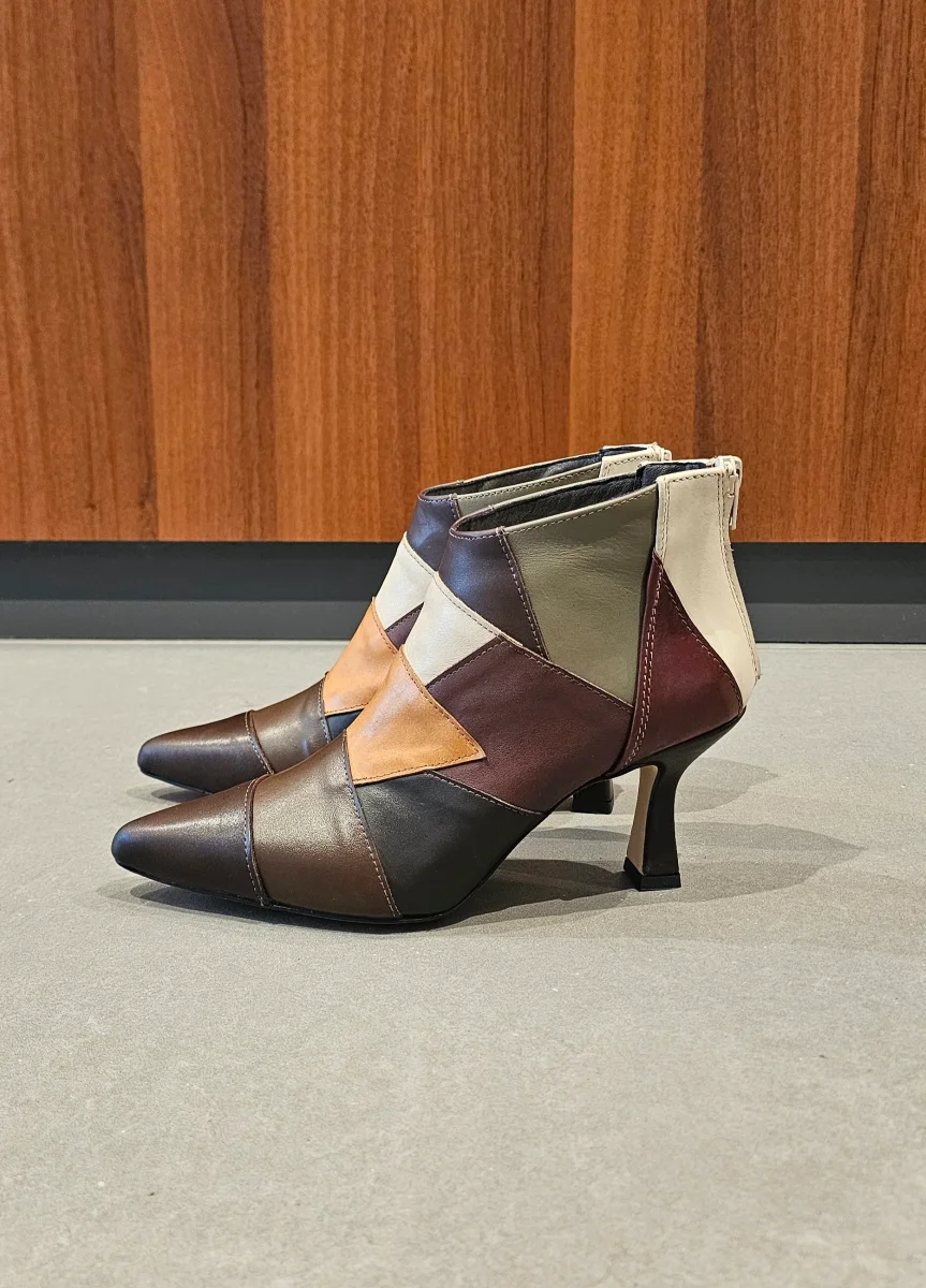 Tronchetti Sole 02 pelle cuoio e punta vernice nero