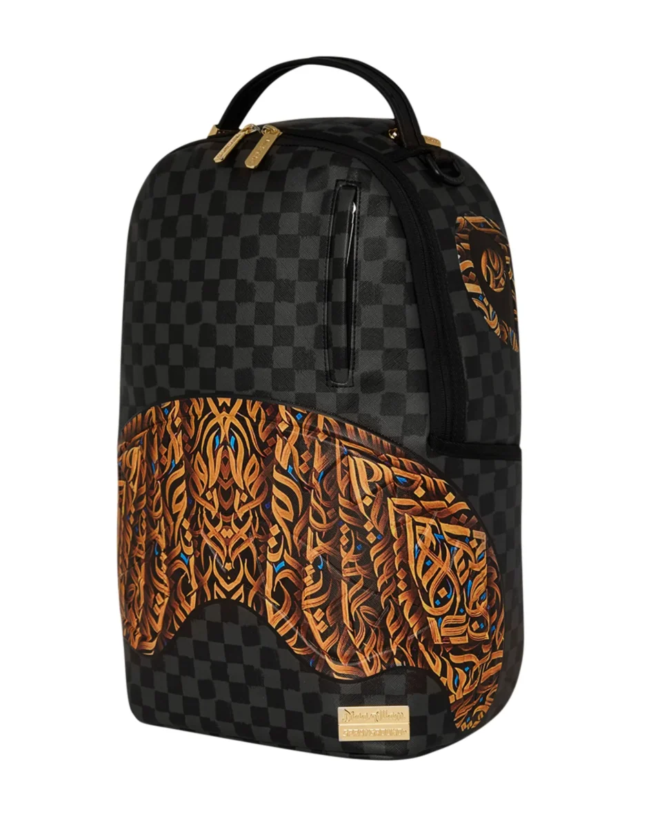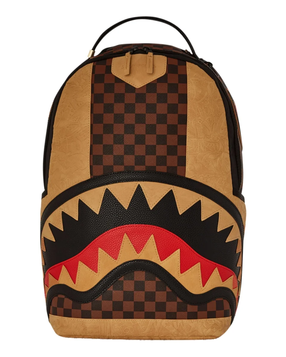 Sprayground Backpack Scuola City Viaggio Motivo a Scacchi Marrone Unisex Morso Trasparente