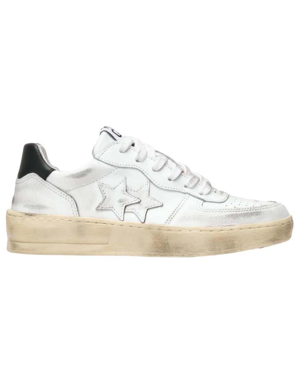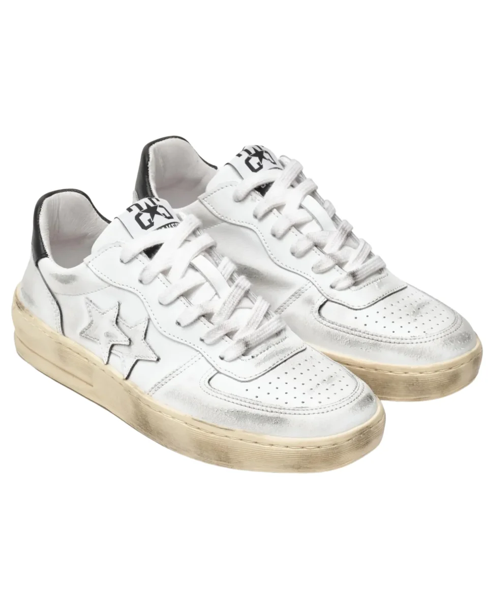 Sneaker 2Star per donna modello Padel con tomaia in pelle bovina con intenso effetto used, fodera in pelle di maialino, sottopiede in poliuretano rivestito con pelle scamosciata bovina, suola in pvc e gomma.